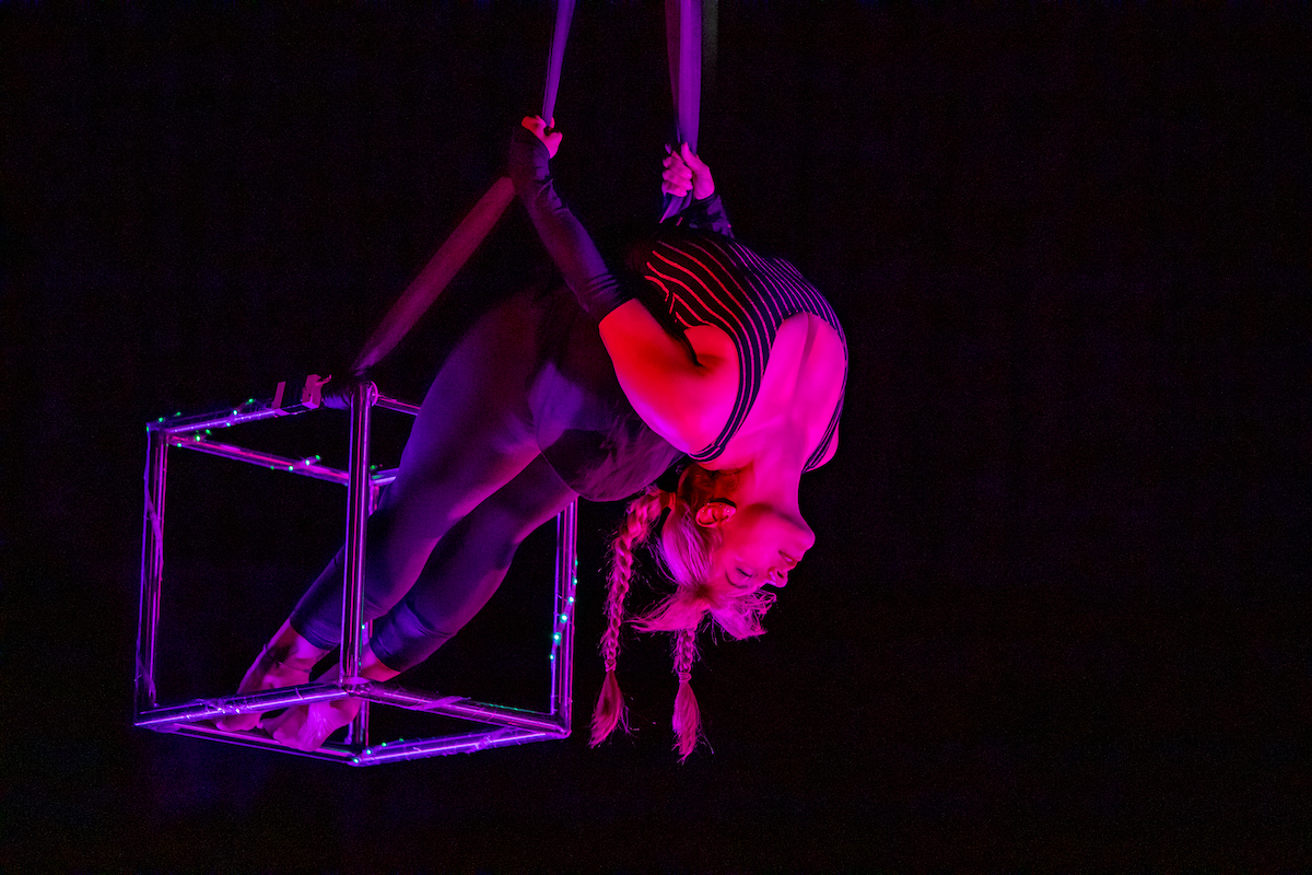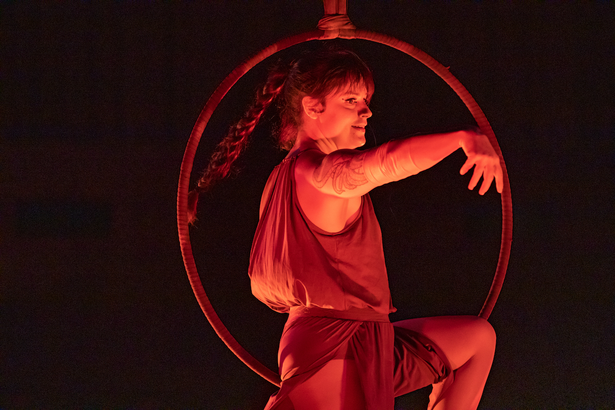 A few months after trying aerial for the first time, she began taking trapeze and hoop classes with Island Circus Space (ICS).