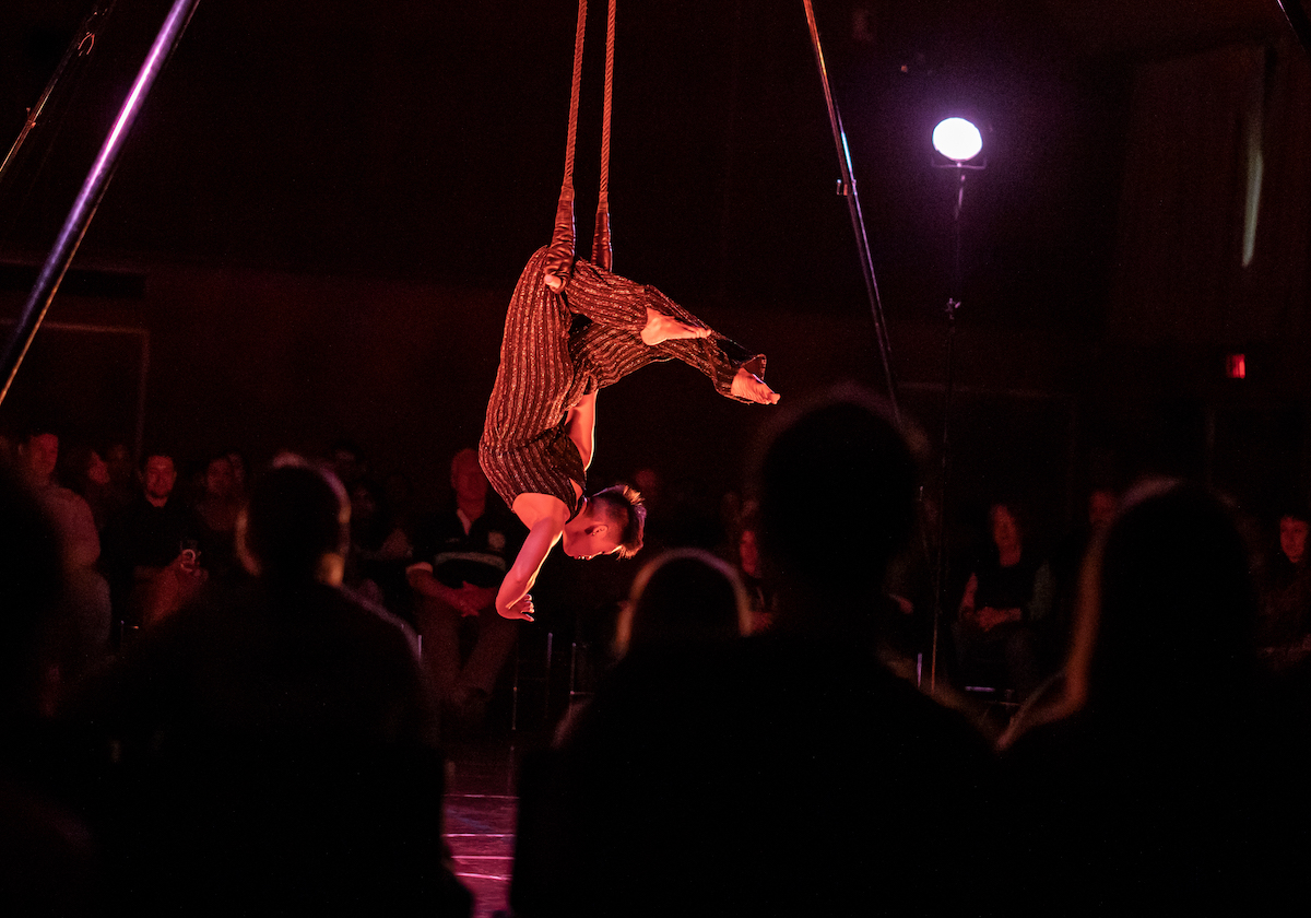 Nobleman said it was the first time ICS hosted a show outside of its studio; the high-vaulted ceiling allowed for the rig, which held performers as they swung through the space.